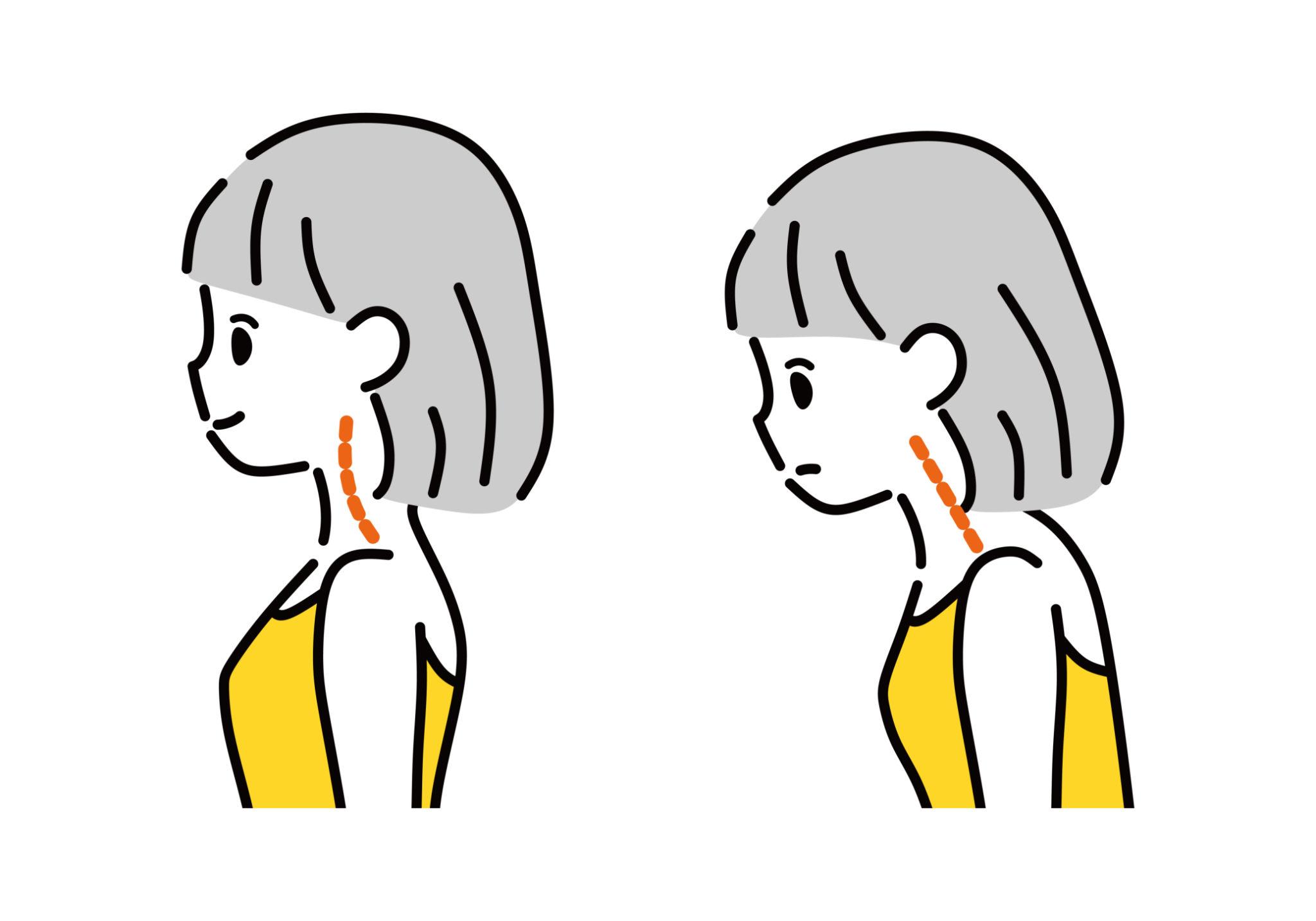 前に出ることで首や肩に常に負担がかかり、筋肉が緊張し続けます。
